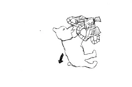 In 2009, writer/director Eric Bair's wife brought him back a gift from a trip away: a statue of a bear holding a camera. The image inspired him to rethink his logo for Bairfilm. He came up with a concept and drew up some storyboards. He tasked one of his friends who was an animator to do it and hoped to premiere the new logo in 2010 in front of the comedy short "Male Order Bride". Unfortunately, his friend was unable to finish it.
